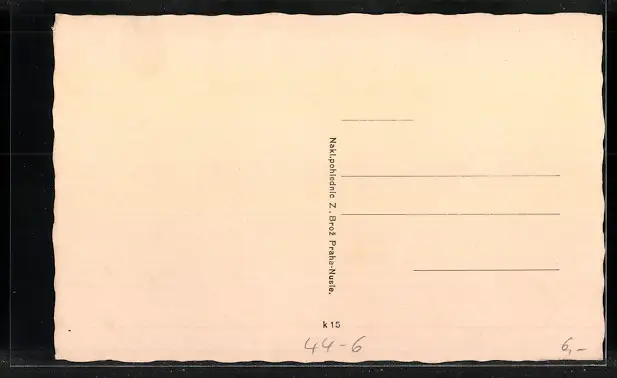 Personenbezogene Daten auf der Rückseite der Karte wurden durch blauen Textmarker unkenntlich gemacht. Die blauen Stellen sind auf die Vorderseite durchgeweicht und wirken sich negativ auf das Postkartenfoto aus