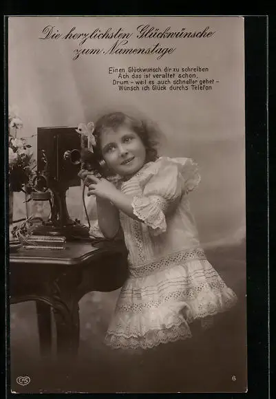 AK Kleines Mädchen am Telefon
