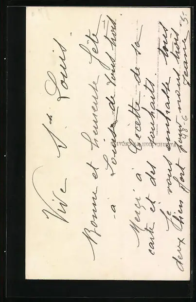 Personenbezogene Daten auf der Rückseite der Karte wurden durch blauen Textmarker unkenntlich gemacht. Die blauen Stellen sind auf die Vorderseite durchgeweicht und wirken sich negativ auf das Postkartenfoto aus