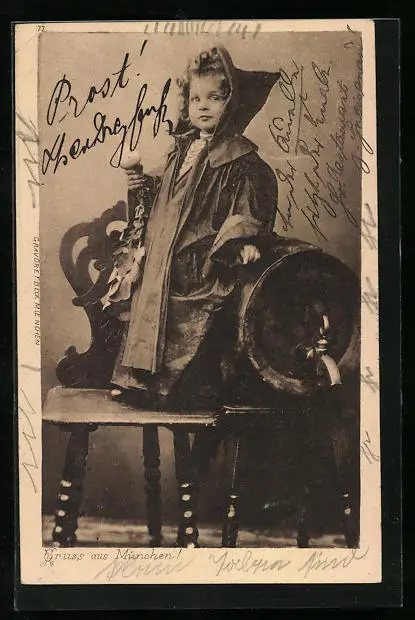 AK Kleines Mädchen an Bierfass gelehnt, Münchner Kindl