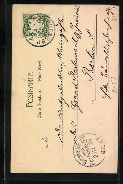 alte Ansichtskarte, gelaufen 1904, Eckknick oben li., guter Zustand