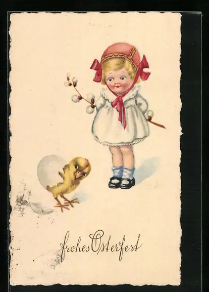 AK Kleines Mädchen erblickt schlüpfendes Küken