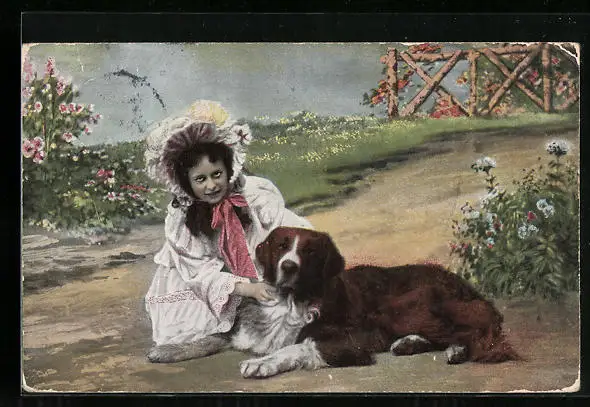 AK Kleines Mädchen mit Bernhardiner im Sommer