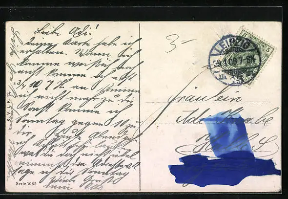 gelaufen 1909, Ecken bestoßen, kl. Eckknick oben re., Stempelspur, guter Zustand