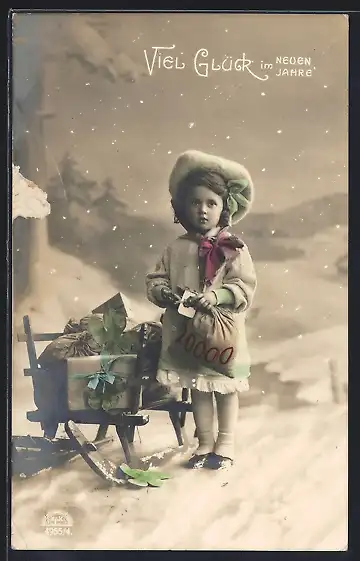 AK Kleines Mädchen mit Geschenken auf einem Schlitten
