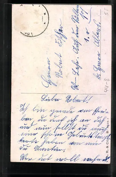 alte Ansichtskarte, gelaufen, Briefmarke entfernt, rückseitig Oberflächenschaden, Stempelspur, guter Zustand