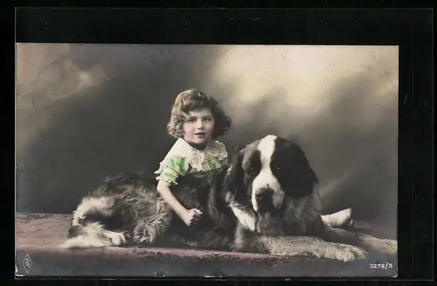 AK Kleines Mädchen mit liegendem Bernhardiner