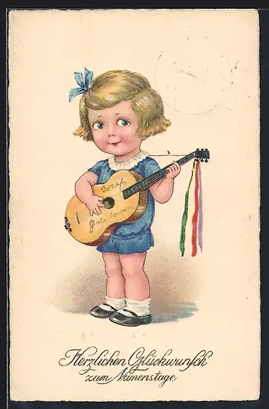 AK Kleines Mädchen spielt Gitarre, Glückwunsch zum Namenstag