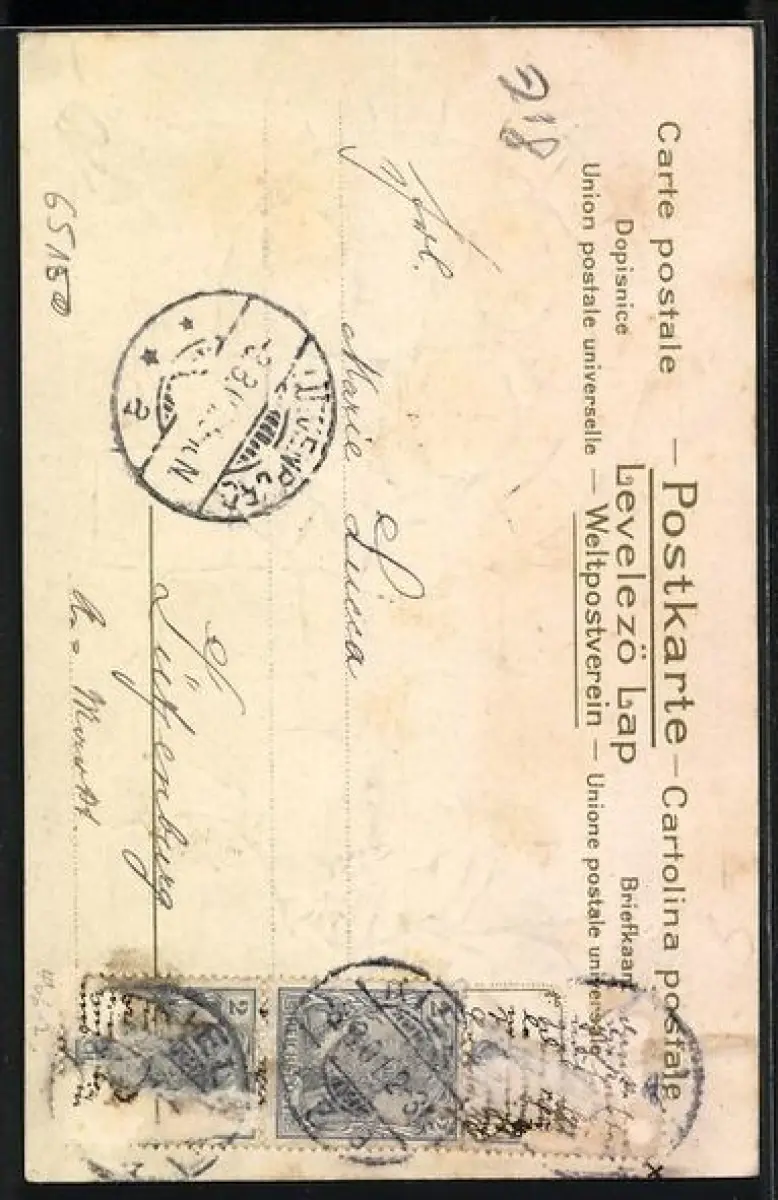 alte Ansichtskarte, gelaufen 1901, Briefmarke entfernt, rückseitig Oberflächenschaden, guter Zustand