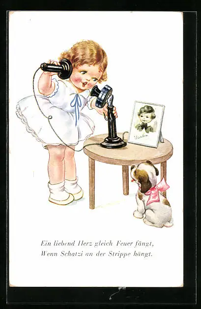 AK Kleines Mädchen spricht am Telefon mit ihrem Schatzi