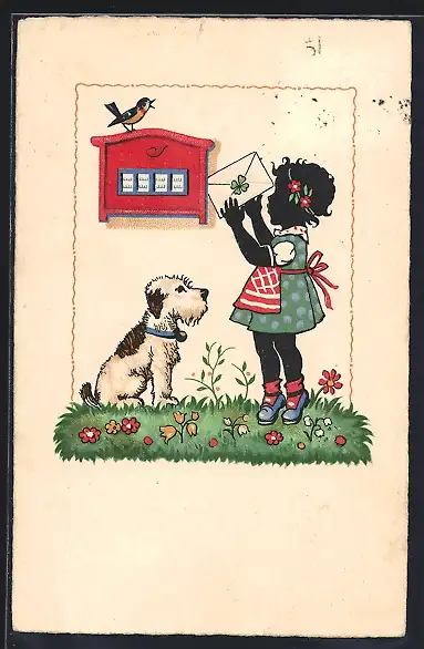 AK Kleines Mädchen wirft einen Brief ein