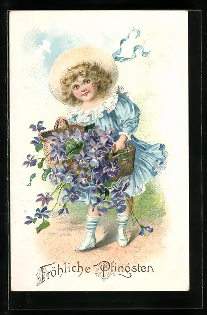AK Kleines, blondes Mädchen mit Korb voller Veilchen