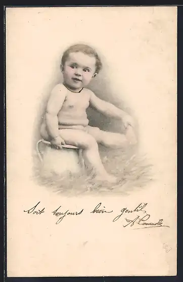 AK Kleinkind mit Babyspeck auf dem Nachttopf