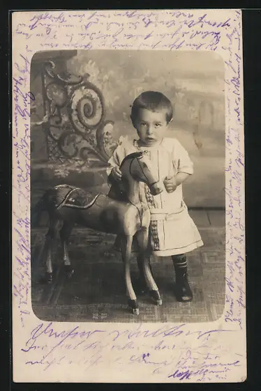 AK Kleinkind mit Holzpferd