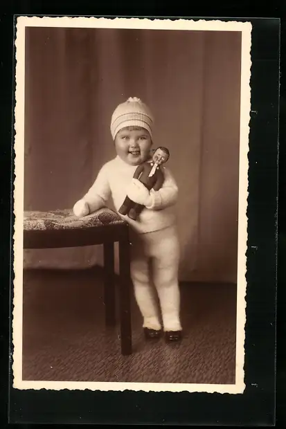 AK Kleinkind mit Puppe im Arm