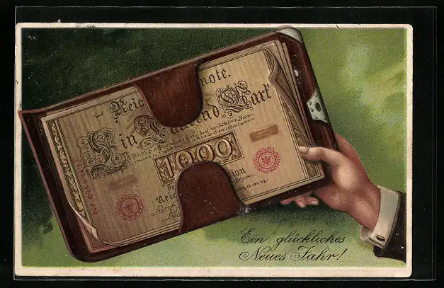 AK Klemmbrett und Geldschein, Neujahrsgruss
