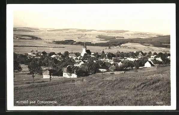AK Klencí pod Cerchovem, Ortsansicht mit Kirche