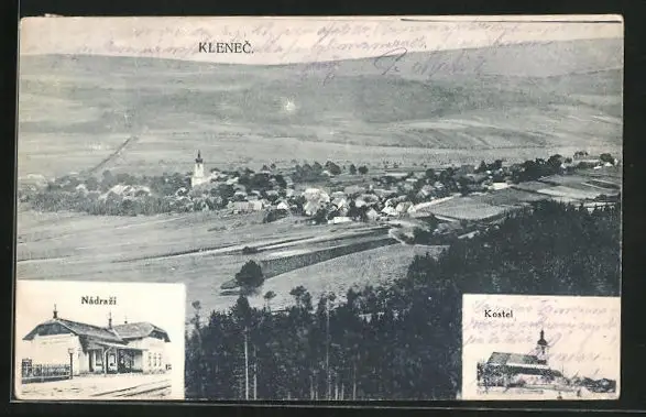 AK Klenec, Kostel, Nádrazi, Celkový pohled