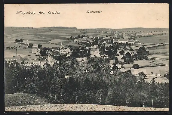 AK Klingenberg Bez. Dresden, Totalansicht von einem Berg aus