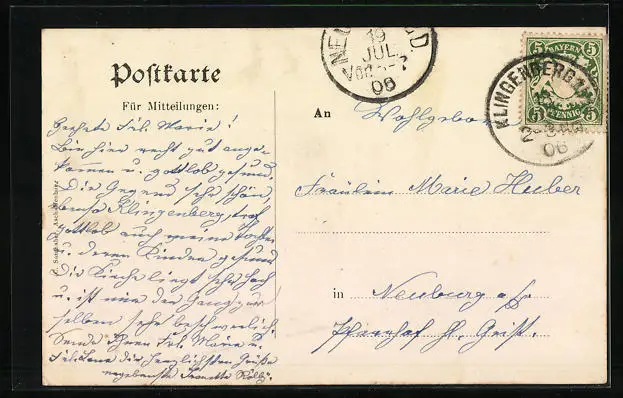 alte Ansichtskarte, gelaufen 1906, guter Zustand