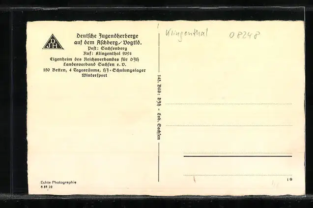 AK Klingenthal i. Sa., Jugendherberge Aschberg
