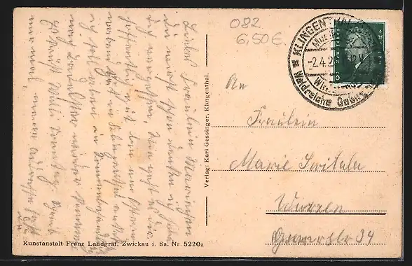 Weitere Ansichtskarten zur Postleitzahl 08248