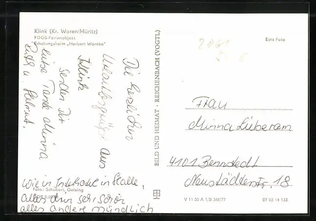 AK Klink / Müritz, FDGB-Ferienobjekt Erholungsheim Herbert Warnke