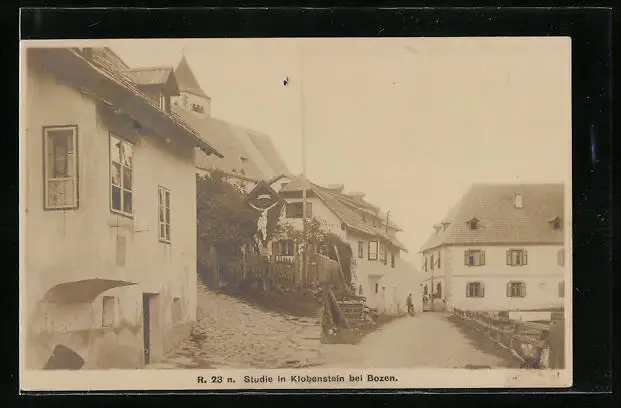 AK Klobenstein, Ortspartie mit Flurkreuz