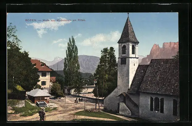 AK Klobenstein am Ritten /Bozen, Ortspartie mit Kirche