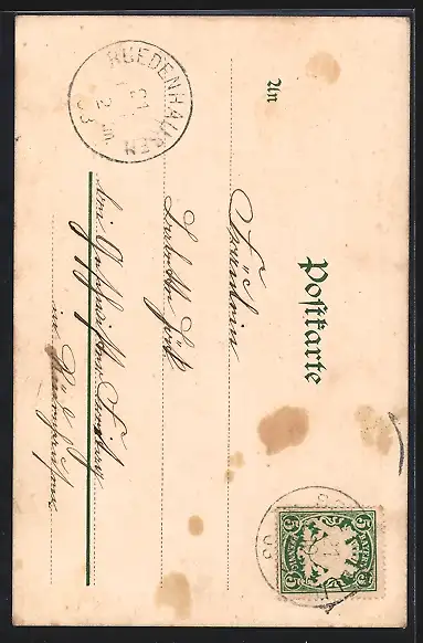 alte Ansichtskarte, gelaufen 1903, Klebe- und Papierrest li. oben, guter Zustand