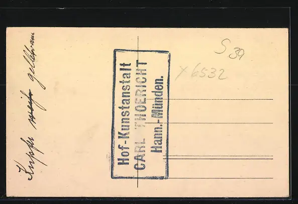 Personenbezogene Daten auf der Rückseite der Karte wurden durch blauen Textmarker unkenntlich gemacht. Die blauen Stellen sind auf die Vorderseite durchgeweicht und wirken sich negativ auf das Postkartenfoto aus