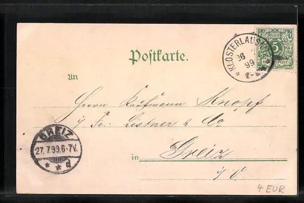 alte Ansichtskarte, gelaufen 1899, guter Zustand