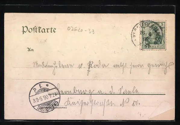 alte Ansichtskarte, gelaufen 1906, Eckknick und kleiner Einriss rechts oben, guter Zustand