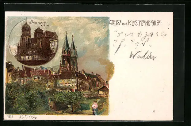 AK Klosterneuburg, Ortsansicht mit Stiftskirche und der unvollendeten Kirche