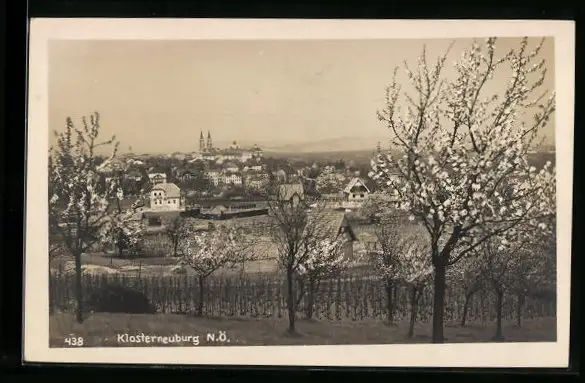 AK Klosterneuburg, Ortsansicht mit blühenden Bäumen