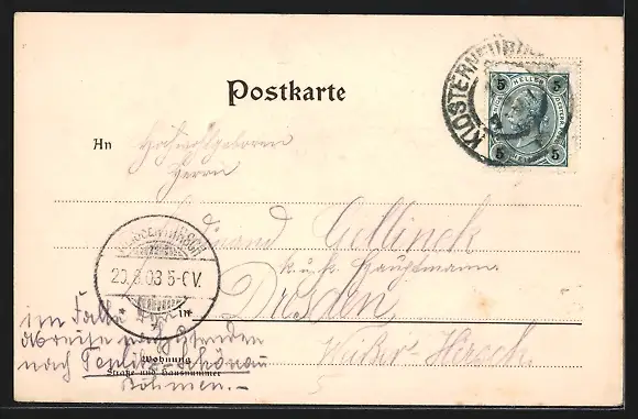 alte Ansichtskarte, gelaufen 1903, guter Zustand