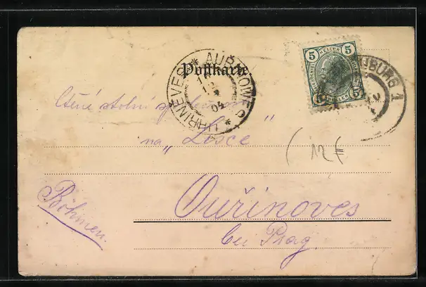 gelaufen 1904, Eckknick links oben, Stempelspur, Bugspur mit Einriss oberer Rand rechts, Einriss linkes untere Eck, guter Zustand