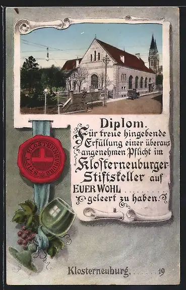 AK Klosterneuburg, Strassenpartie am Restaurant Stiftskeller