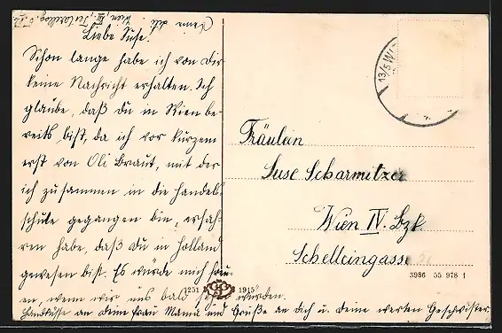 alte Ansichtskarte, gelaufen, Briefmarke entfernt, guter Zustand