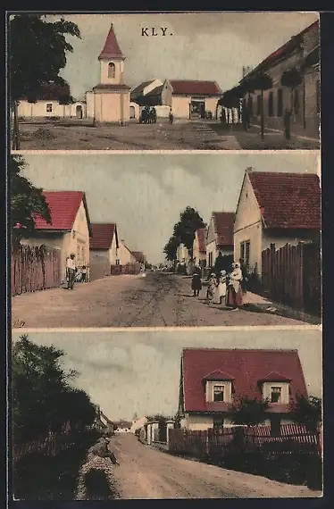 AK Kly, Partie mit Kirche und Strassen mit Wohnhäusern