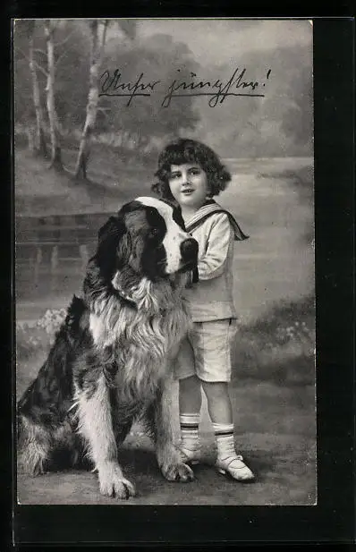 AK Knabe im Matrosenanzug mit Bernhardiner