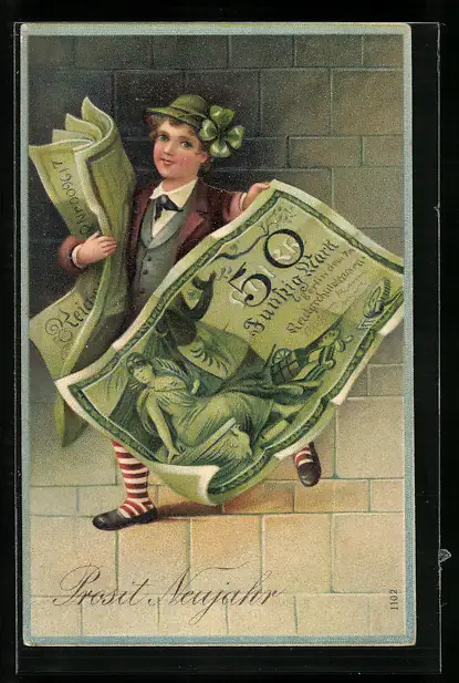 AK Knabe mit Geldscheinen - Neujahrsgruss