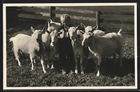 AK Knabe mit Ziegen auf einem Rasen