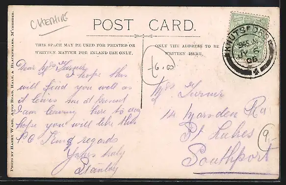 Ein Angebot in Ansichtskarten Cheshire - 184 weitere Angebote in dieser Kategorie