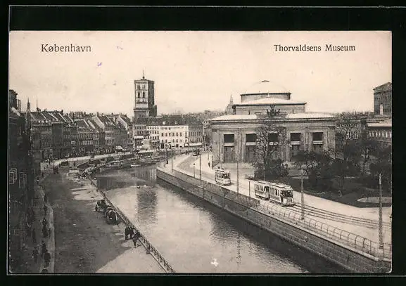 AK Kobenhaven, Thorvaldsens Museum, Strassenbahn