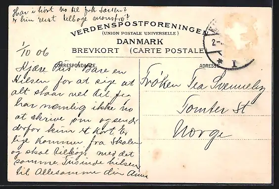 alte Ansichtskarte, gelaufen 1906, Briefmarke entfernt, rückseitig Oberflächenschaden, guter Zustand
