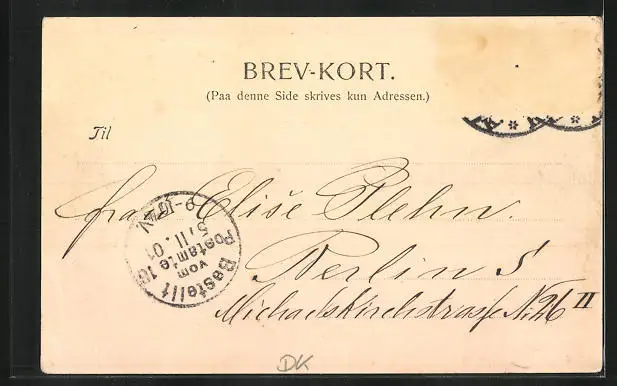 gelaufen 1901, Briefmarke entfernt, Eckknick re. unten, Bugspuren re. oben u. unten, Stempelspur, guter Zustand