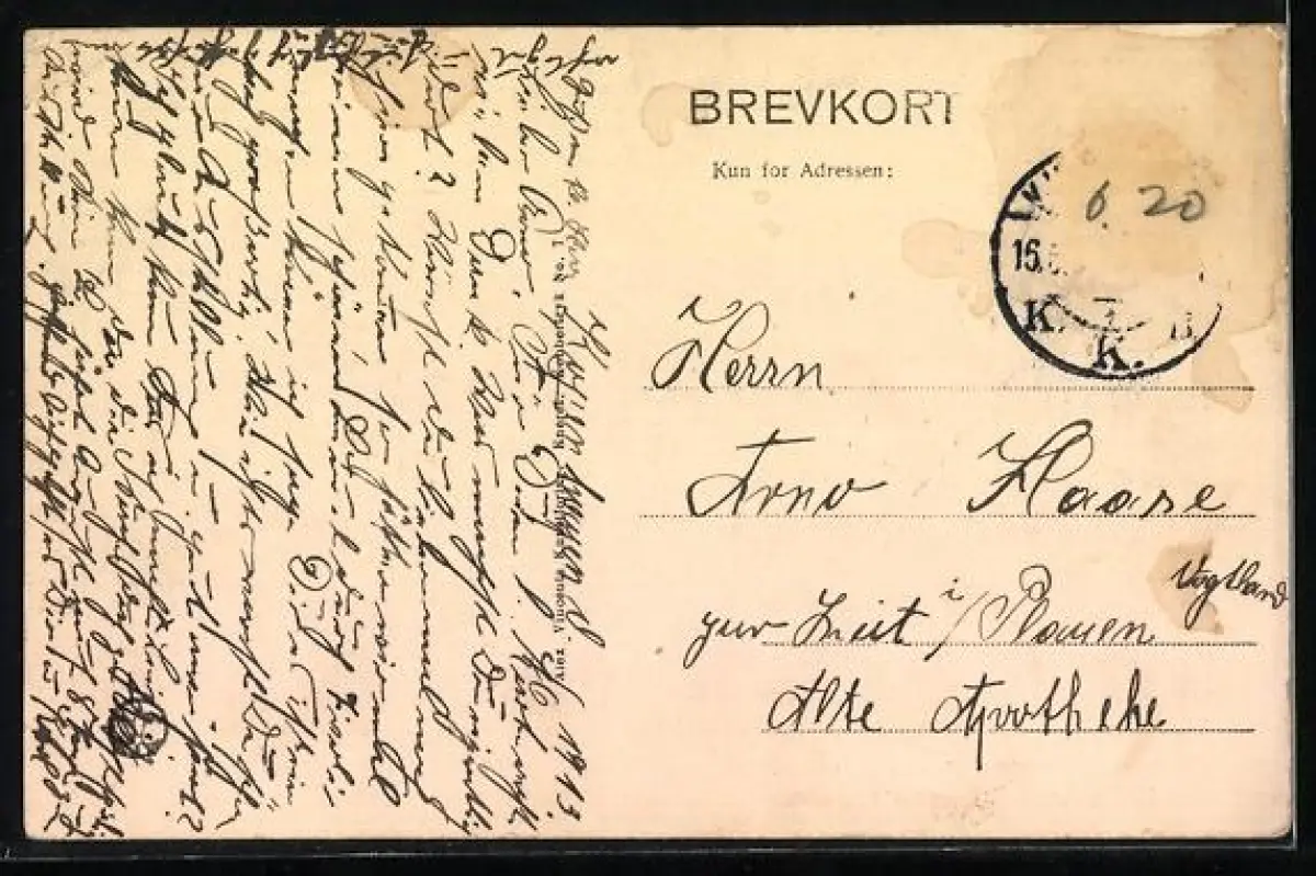 alte Ansichtskarte, gelaufen, Briefmarke entfernt, guter Zustand