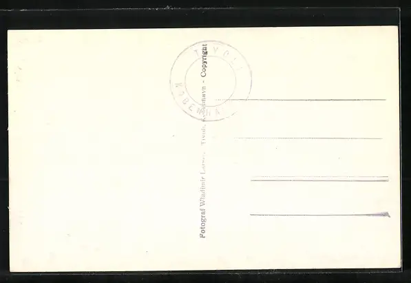 Personenbezogene Daten auf der Rückseite der Karte wurden durch blauen Textmarker unkenntlich gemacht. Die blauen Stellen sind auf die Vorderseite durchgeweicht und wirken sich negativ auf das Postkartenfoto aus