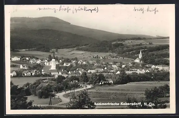 AK Kobersdorf, Ortsansicht mit Kirchen